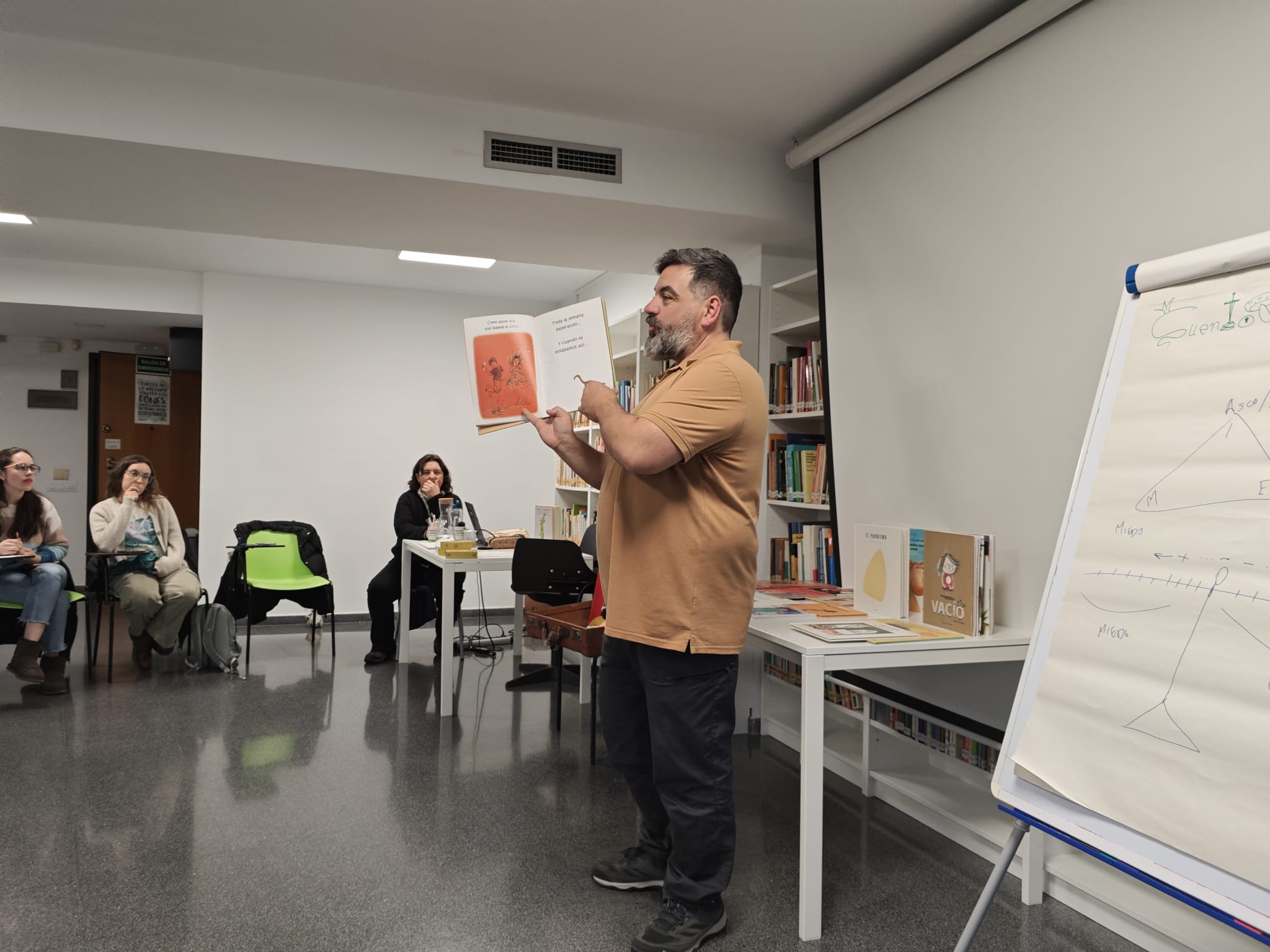 La sesión reunió a 21 trabajadoras y trabajadores sociales, que participaron activamente en una jornada dinámica y participativa. A lo largo del taller se leyeron distintos cuentos para trabajar emociones como el miedo, la incertidumbre, la rabia o el amor, mostrando cómo estas historias pueden convertirse en un recurso útil para abrir espacios de diálogo y reflexión.